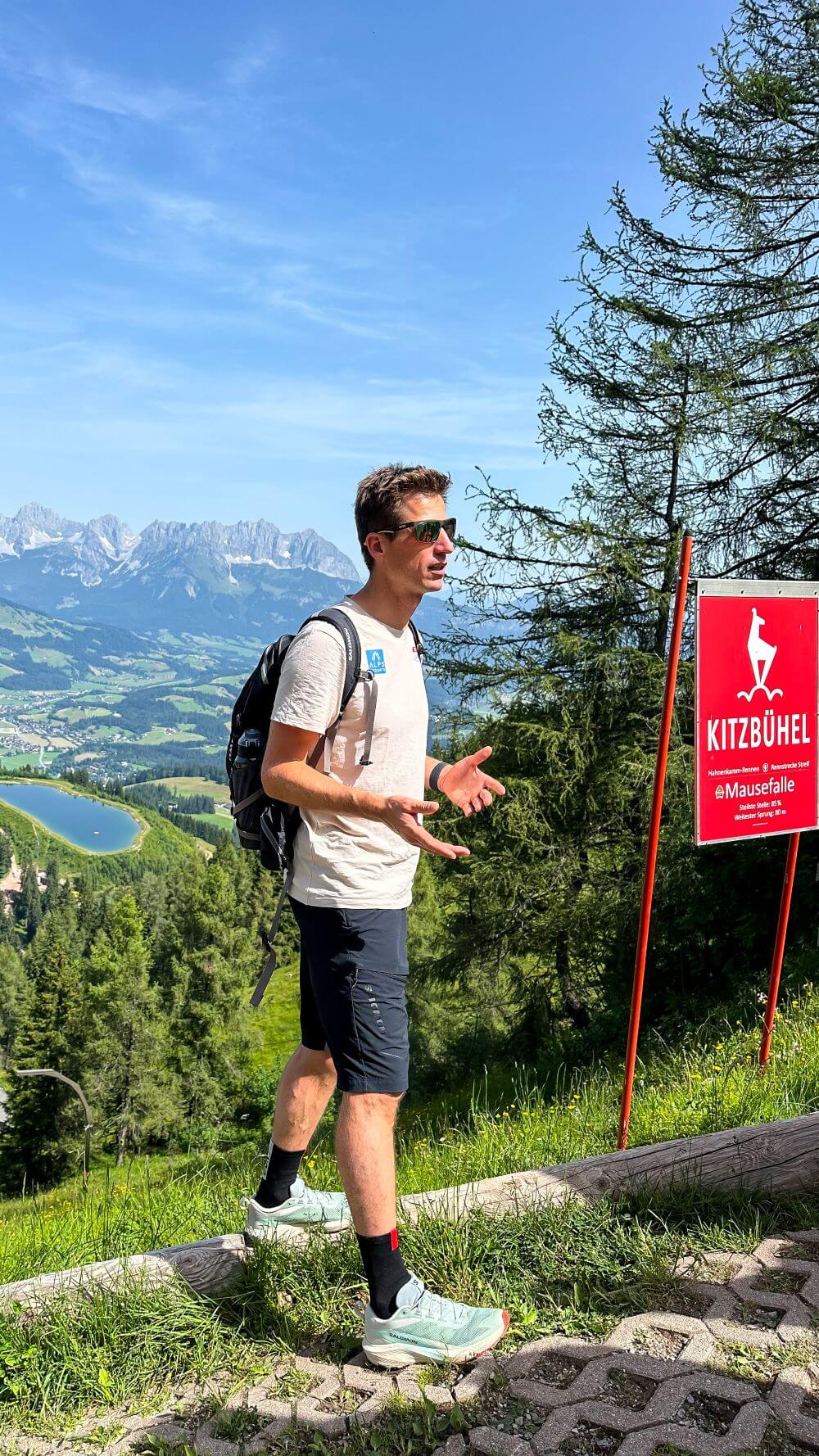 Dani from the ALPS RESORTS marketing team had “one hell of a hike”: He laced up his mountain boots and got to hike the legendary Streif in Kitzbühel with ski world champion Hannes Reichelt.