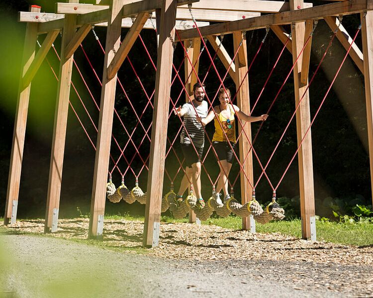 There is plenty for older children and adults to do at the end of the valley. With a length of 8 km and around 200 stations, the high ropes course is the largest high ropes course in Europe. The mini course, which opens this summer (2025), is where children from the age of 3 can put their climbing skills to the test. The Jump & Slide Park features a giant slide, mega jumping towers and a 13-metre-long bouldering wall.