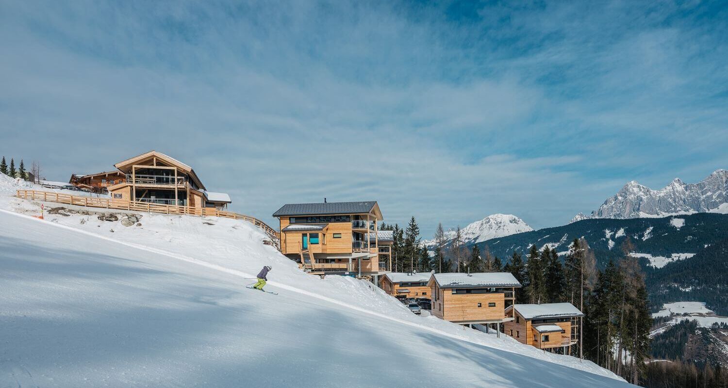 Dreaming of your own holiday home, right next to the piste and with a private wellness area, exclusively for you and your loved ones? In that case, we have two special ALPS RESORTS accommodations for you: The luxurious Bergresort Hauser Kaibling in Ennstal, Styria, will exceed your every expectation! Located directly on the slopes and connected to the vast Schladming 4-Mountain Ski Area, you'll find a luxurious holiday home with its own sauna, covered terrace, and a heated pool that you can use even in the colder months.