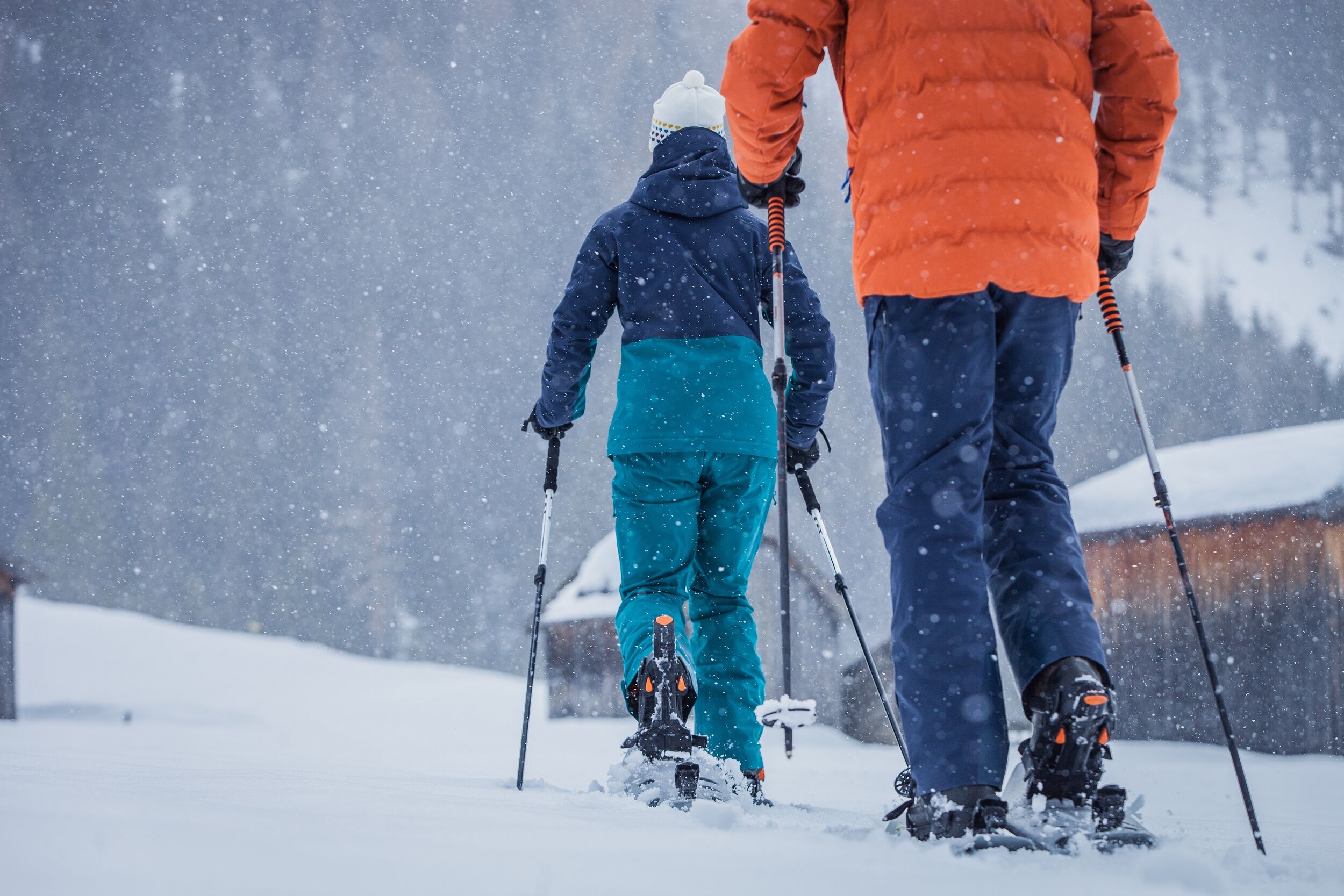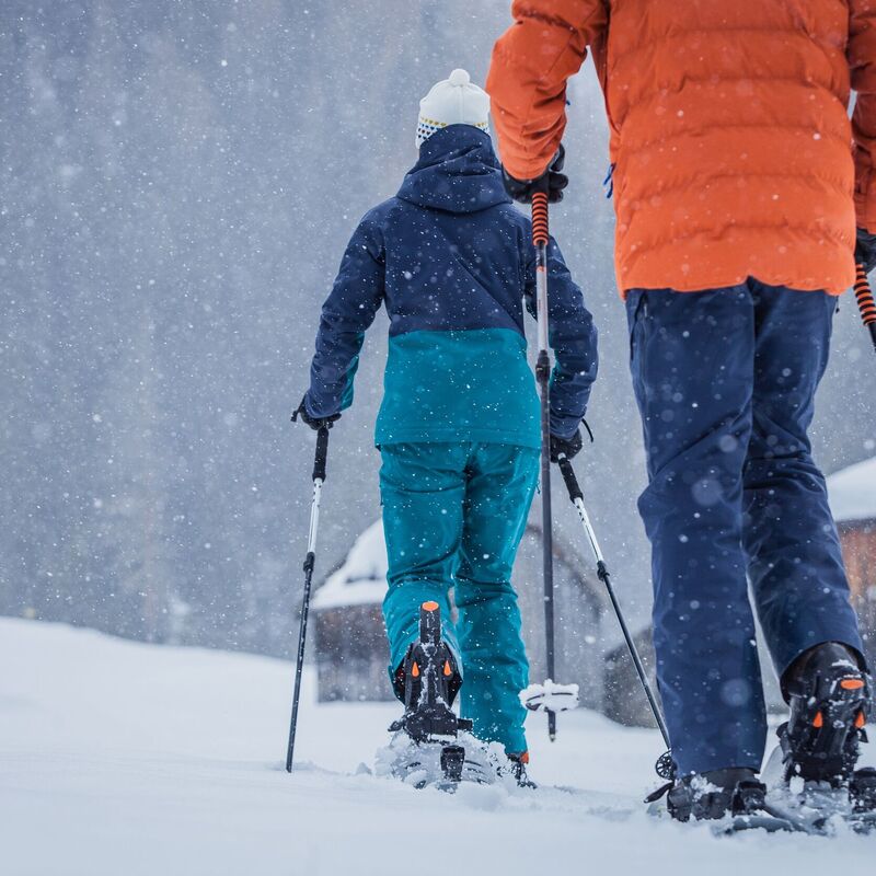 - Hiking poles: They give beginners in particular more support and safety. They also help you to push off, which makes snowshoeing easier. Conventional hiking poles, ideally with wider plates, are suitable. This prevents sinking in the snow.