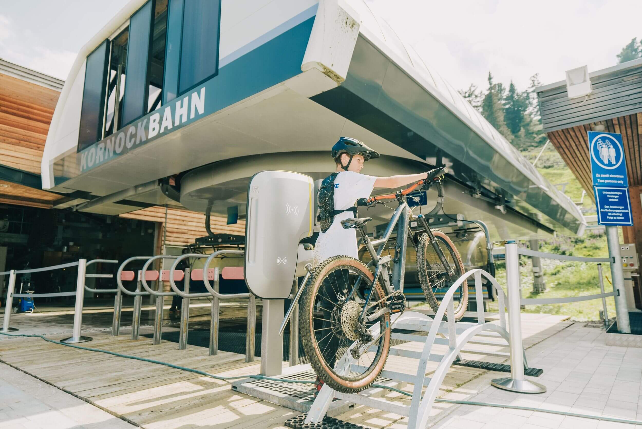 Die Kornockbahn transportiert Bikes bequem auf 2200 Meter Seehöhe – ideal für den Einstieg in den Flowtrail oder eine Bike & Hike Tour. Der Bike-Transport ist im Ticketpreis inkludiert.