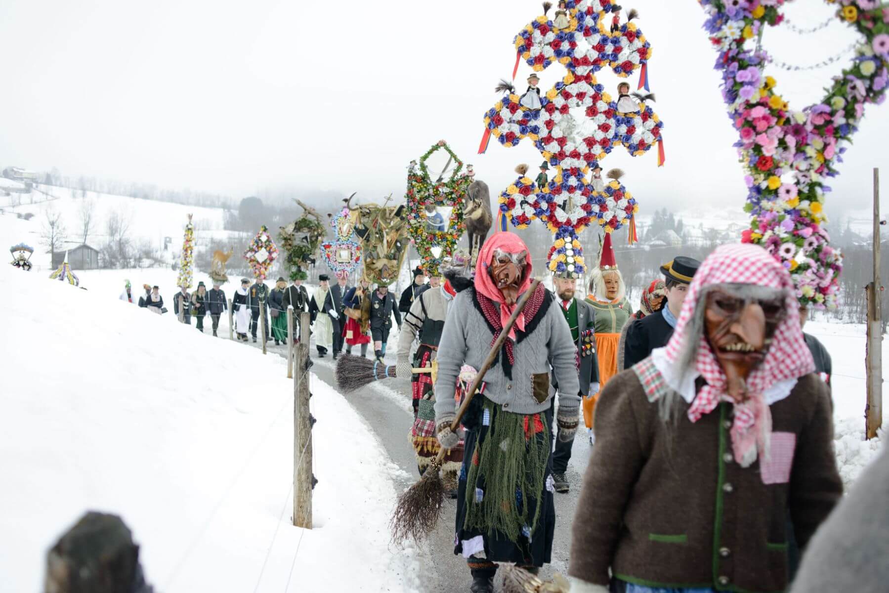 Bevor die vorweihnachtliche Stille einkehrt, wird es Anfang Dezember nochmal kurzzeitig laut in der Alpenregion: Dann treiben nämlich die Krampusse ihr Unwesen, und versuchen mit ihren lauten Schellen und Gebrüll das Böse zu vertreiben. Die Perchten und Gestalten, die um den Jahreswechsel unterwegs sind, haben viele Namen – und viele Gesichter. Auch schöne!
