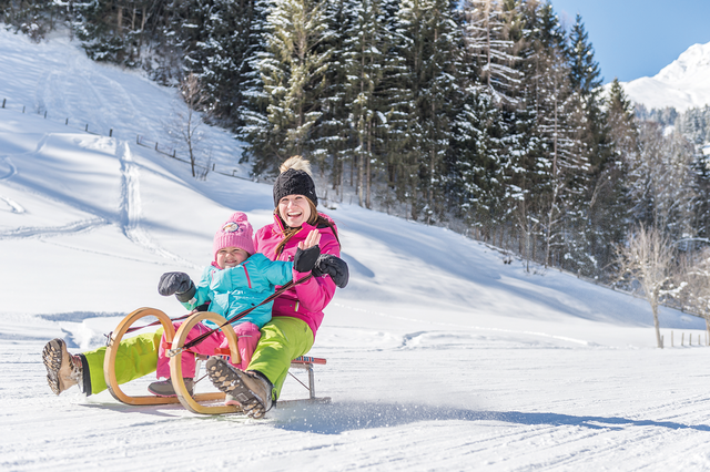 Jüngere Kinder genießen Rodelbahnen, Winterspaziergänge und Schneeerlebnisse im Tal. Ab etwa 4 Jahren können Kinder spielerisch erste Skikurse besuchen.