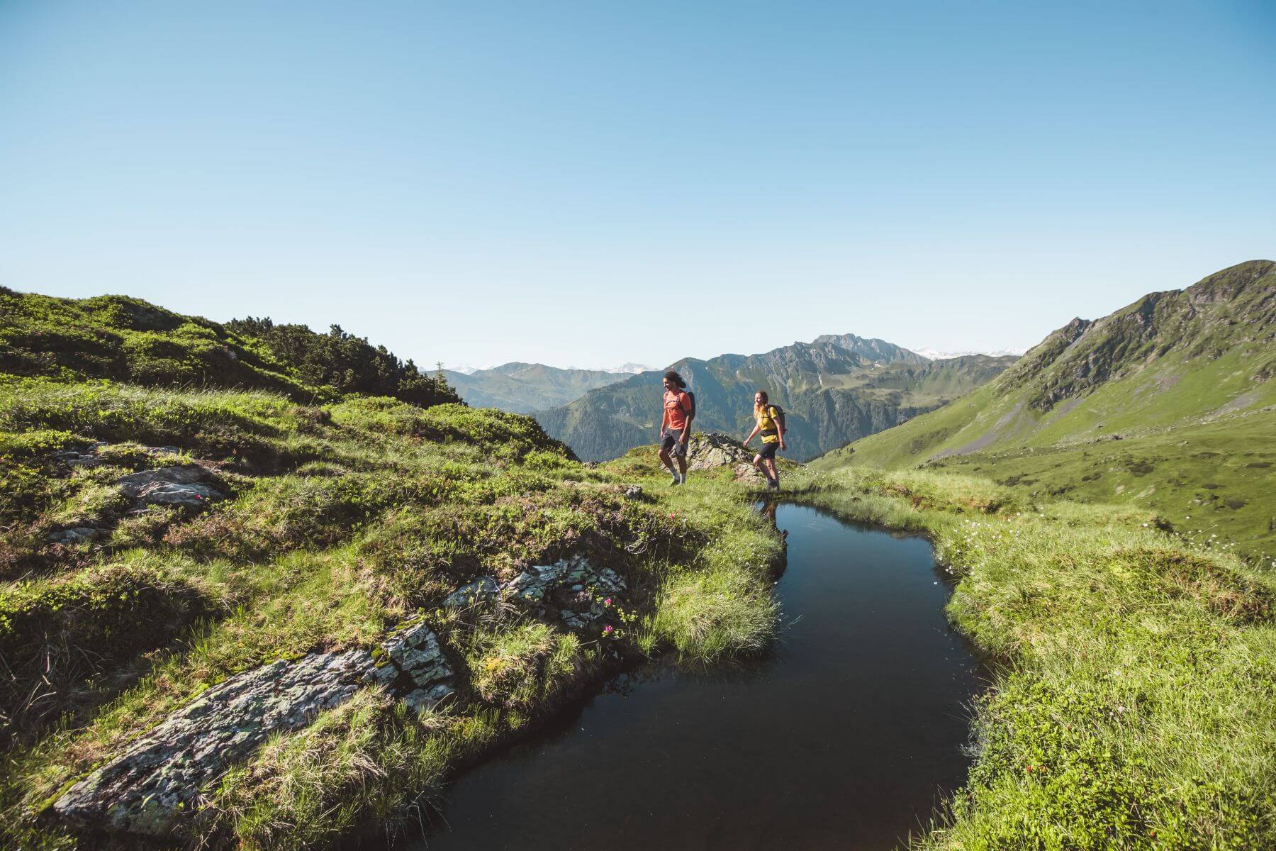 Saalbach Hinterglemm hat rund 400 km markierte Wanderwege und Trails zu bieten. Damit nicht genug: Mit der Joker Card Saalbach bringt dich die Frühfahrt des Schattberg X-press´ (Montag bis Freitag, 7:30 – 7:40 Uhr) zum Startpunkt des Pinzgauer Spaziergangs (18 km, 650 hm) und der 7 Summits-Tour (24 km, 1.450 hm). Diese beiden herausfordernden Wanderungen gehören mit dem Home of Lässig Walk zur Saalbach Wander Challenge.