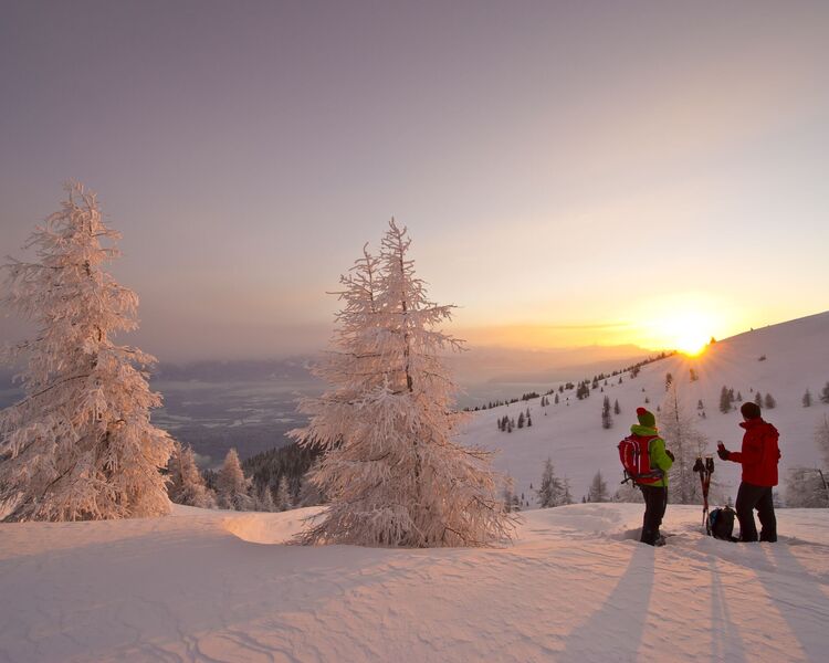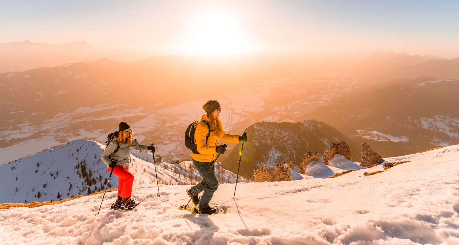 Villach, Gerlitzen & Dobratsch: Eine geniale Kombi aus Berg & See erwartet dich in der Region Villach: Der Gerlitzen Alpe liegt der Ossiacher See zu Füßen. Auf der Gerlitzen stehen gesamt 12 Kilometer Winterwanderwege zur Auswahl. Am Villacher Hausberg, dem Dobratsch (den man von der Gerlitzen gut im Blick hat), werden geführte Schneeschuhtouren und Vollmondwanderungen angeboten.