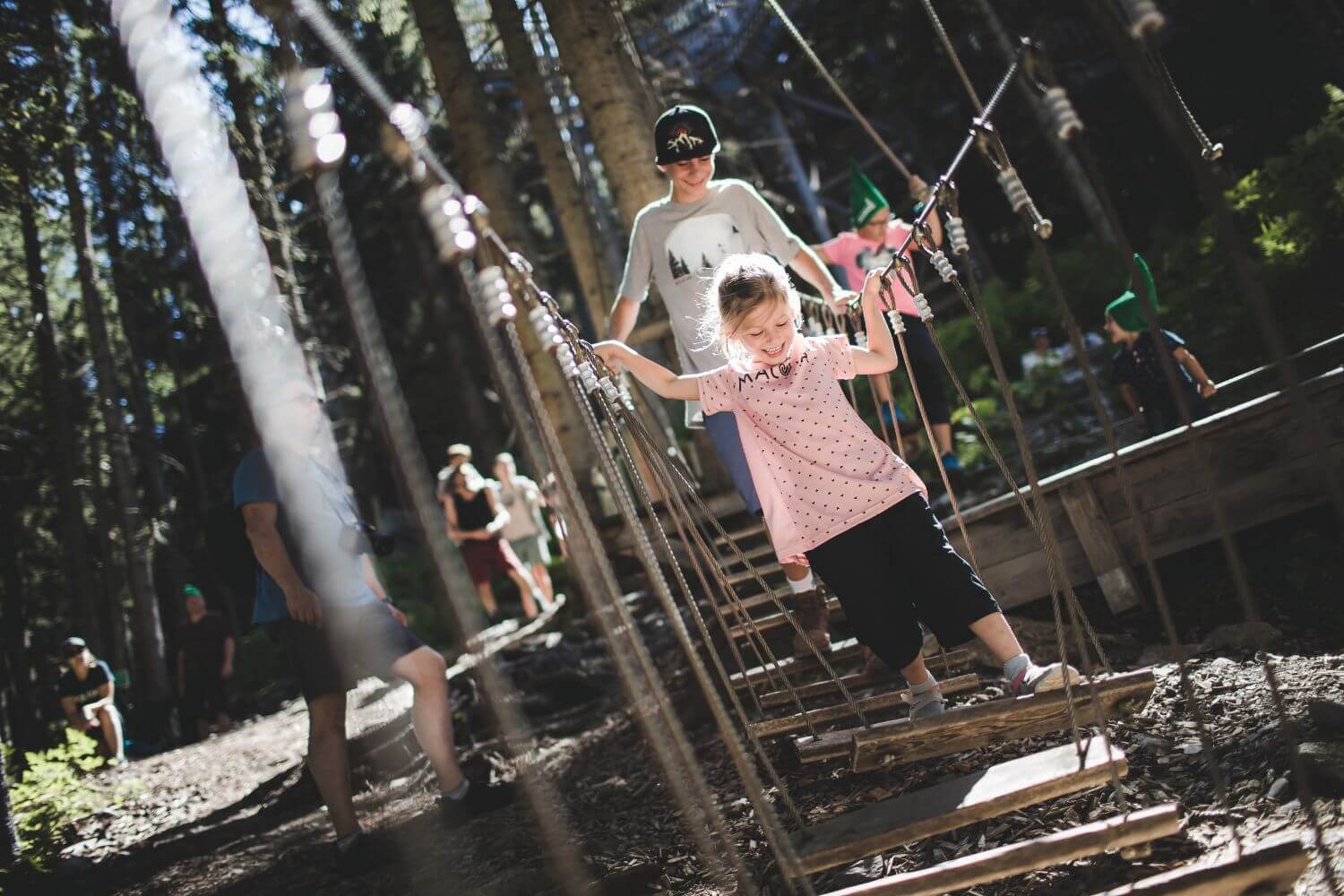 Jede Menge Action bieten die Angebote im Talschluss für größere Kinder und Erwachsene. Der Hochseilparcours ist mit einer Länge von 8 km und rund 200 Stationen Europas größter Hochseilgarten. Neu ab Sommer 2025 ist der Mini-Parcours, in dem auch Kinder ab 3 Jahren bereits ihre Kletterkünste unter Beweis stellen können. Im Jump & Slide Park erwarten euch Riesenrutsche, Megaspringtürme und eine 13 m lange Boulderwand.