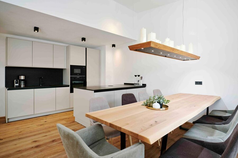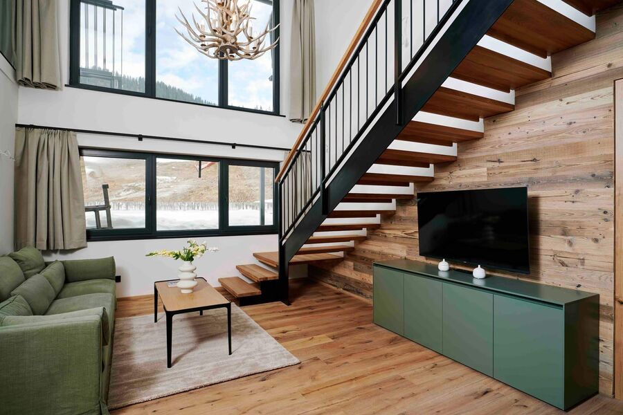 While enjoying the stunning beauty of the mountains, you will feel right at home there in your chalet. Natural materials ensure a cozy atmosphere and an Alpine ambience. Spacious living areas and modern amenities leave nothing to be desired: spend romantic evenings by the fireplace, enjoy some quality family time, or experience unforgettable adventures with your best friends right next to the ski slope. The comfortable bedrooms and stylish bathrooms promise pure relaxation.