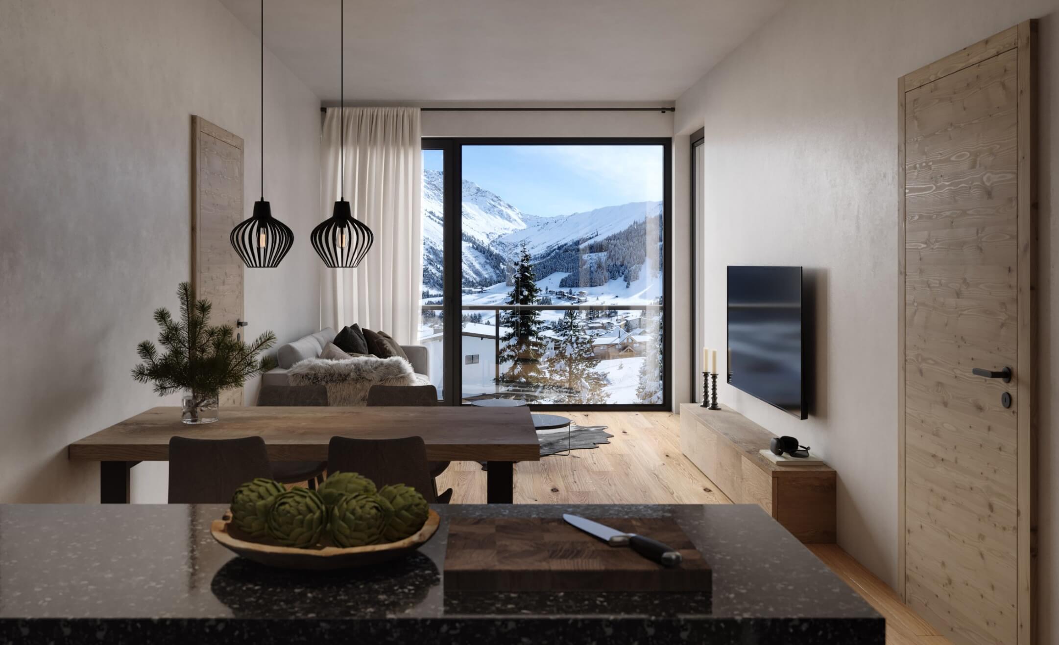 All apartments are bright and spacious, with 35 - 155 m² of living space, fully equipped kitchens, inviting living/dining areas and modern bathrooms. Depending on the category, your apartment in Berwang has 1 - 4 bedrooms and a balcony or terrace where you can enjoy the view of the Roter Stein, Thaneller, Hönig, Bleispitze and Galtjoch mountains. The private sauna and hot tub in each apartment provide additional comfort. For even more relaxation, our communal wellness area invites you to unwind and relax.