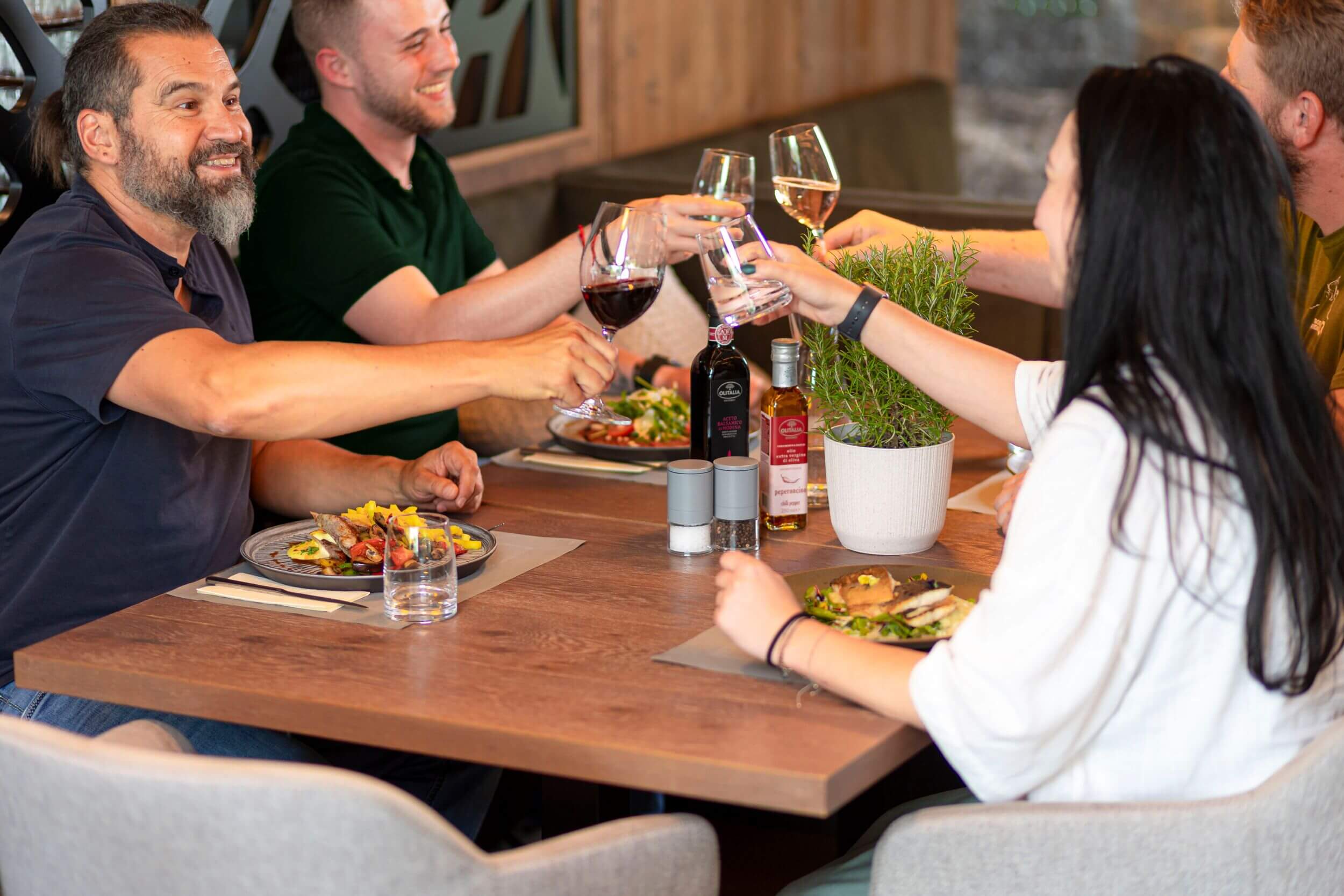 In the stylish ALPS KITCHEN Ehrwald restaurant, located directly in the resort, Tyrolean down-to-earthness meets Mediterranean lightness. In the morning you can enjoy a rich breakfast buffet (included in your stay), in the evening you can look forward to Austrian classics and Italian dishes, from Wiener Schnitzel and cheese spaetzle to genuine Neapolitan pizzas from the stone oven. You can find opening times and the current menu at alps-kitchen.com.