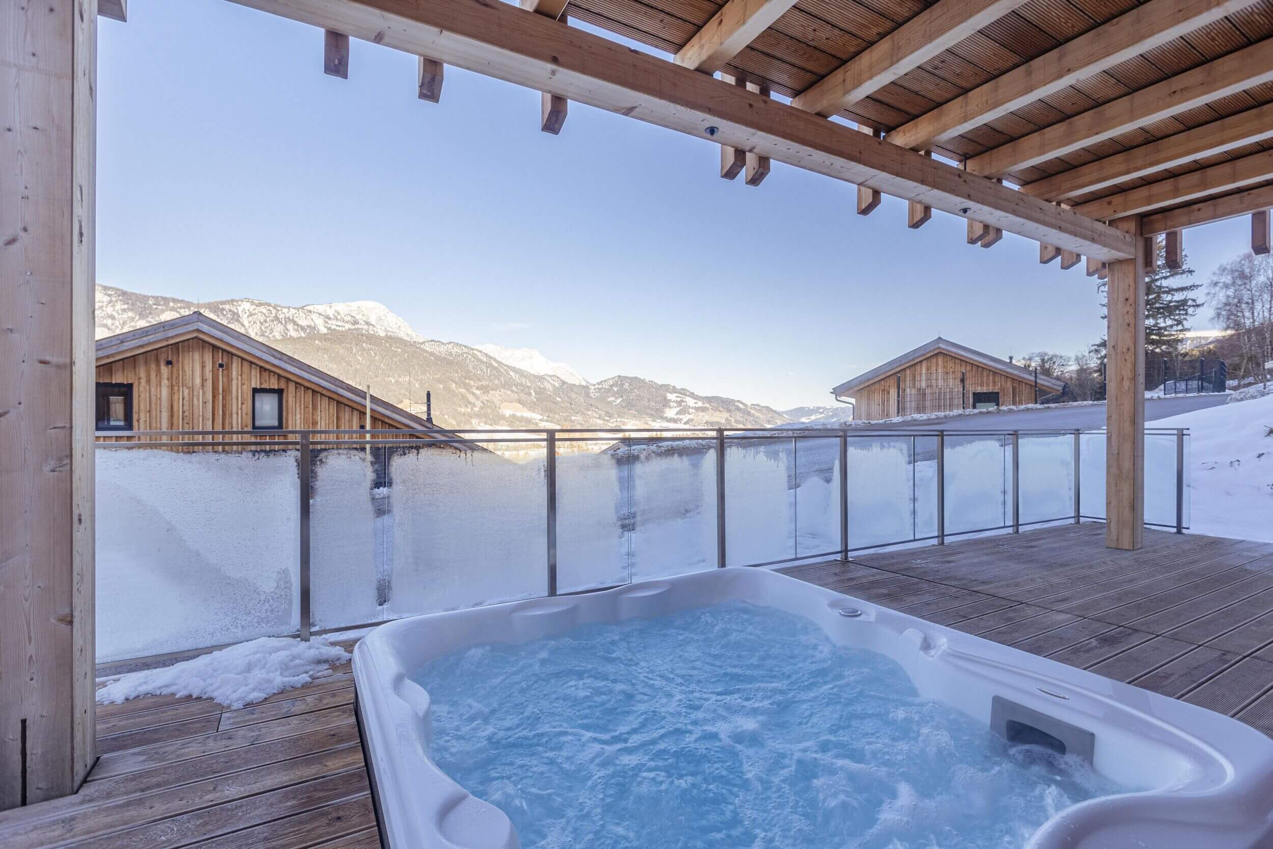 Ein besonderes Highlight ist der private Wellnessbereich in vielen Ferienhäusern. Hier sorgen Finnische Sauna, Whirlpool oder ein beheizter Outdoor-Pool (bis 28 °C) für Entspannung nach aktiven Tagen in den Bergen. Ob nach einer Wanderung im Sommer oder einem Skitag im Winter – hier lässt du den Tag ruhig ausklingen und genießt den Blick ins Ennstal und auf das Dachsteinmassiv.