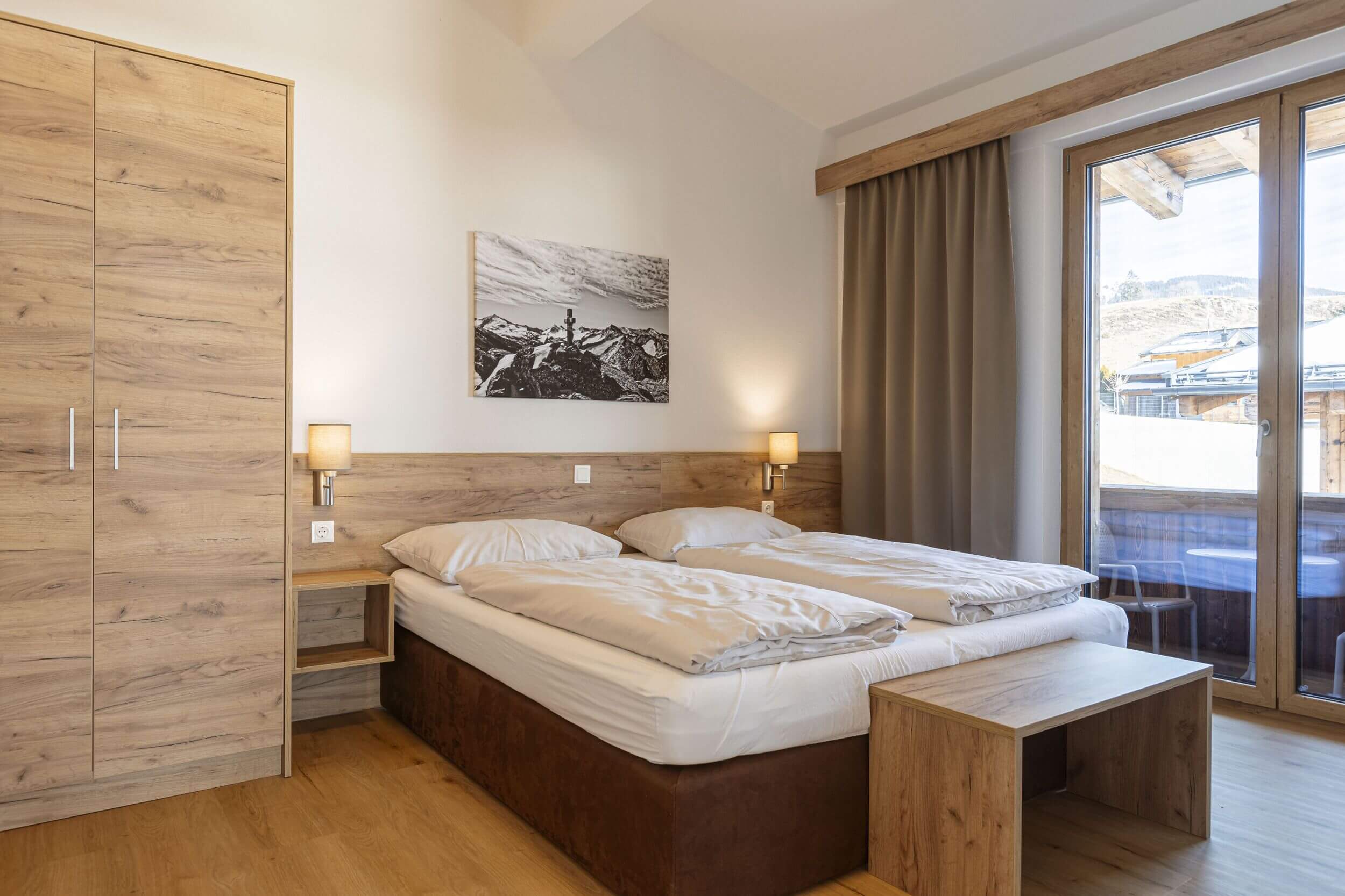 Unser Resort liegt auf rund 1.200 m am Pass Thurn, der das Pinzgauer Salzachtal mit Tirol verbindet. Die Hohen Tauern im Süden, die Kitzbüheler Alpen im Norden: Von deiner Ferienwohnung in Mittersill startest du direkt ins Bergerlebnis. Im Sommer beim Wandern auf der Resterhöhe, im Winter im Skigebiet KitzSki, das von Mittersill-Hollersbach bis Kitzbühel reicht, oder auf den Loipen und Winterwanderwegen im Naturschutzgebiet Wasenmoos.