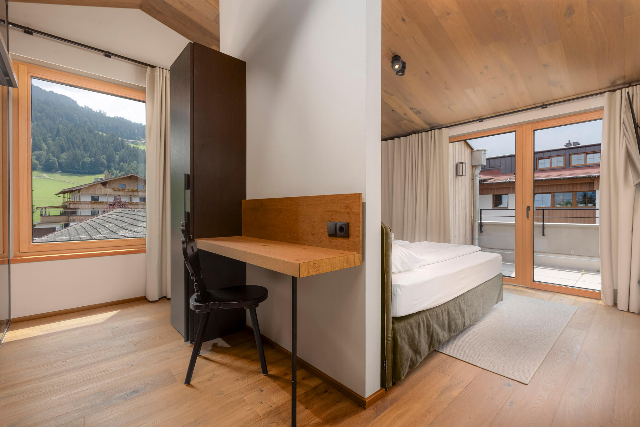 Nur 15 Autominuten von Kitzbühel entfernt liegt das Chalet 104 Westendorf im Brixental mit Ferienwohnungen für bis zu 6 Personen und 3 Schlafzimmern. Einige Einheiten sind mit einer privaten Infrarotsauna ausgestattet, das Penthouse verfügt über einen bepflanzten Dachgarten mit Rundumblick über das Brixental und die Kitzbüheler Alpen. Daneben punkten die Ferienwohnungen auch mit ihrem ästhetischen Interior Design: So tragen hochwertige Materialien sowie ein lichtdurchflutetes und offenes Wohnkonzept zum exklusiven Wohlfühlambiente bei.
