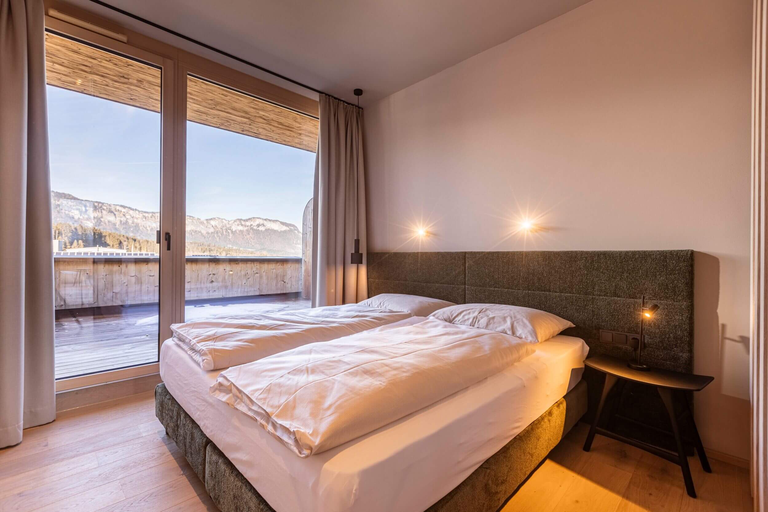 Im Wellnessbereich kannst du dich in den verschiedenen Saunen entspannt zurücklehnen. Der Skiraum mit direktem Zugang zur Tiefgarage sowie ein Bike-Keller mit E-Bike-Ladestation sorgen für praktische Abläufe im Alltag. Familien schätzen den großen Spielplatz mit Rutsche, Wippe, Sandkasten und Koordinationstrail direkt neben dem Resort. Das benachbarte Bichlachbad erreichst du in wenigen Minuten zu Fuß.