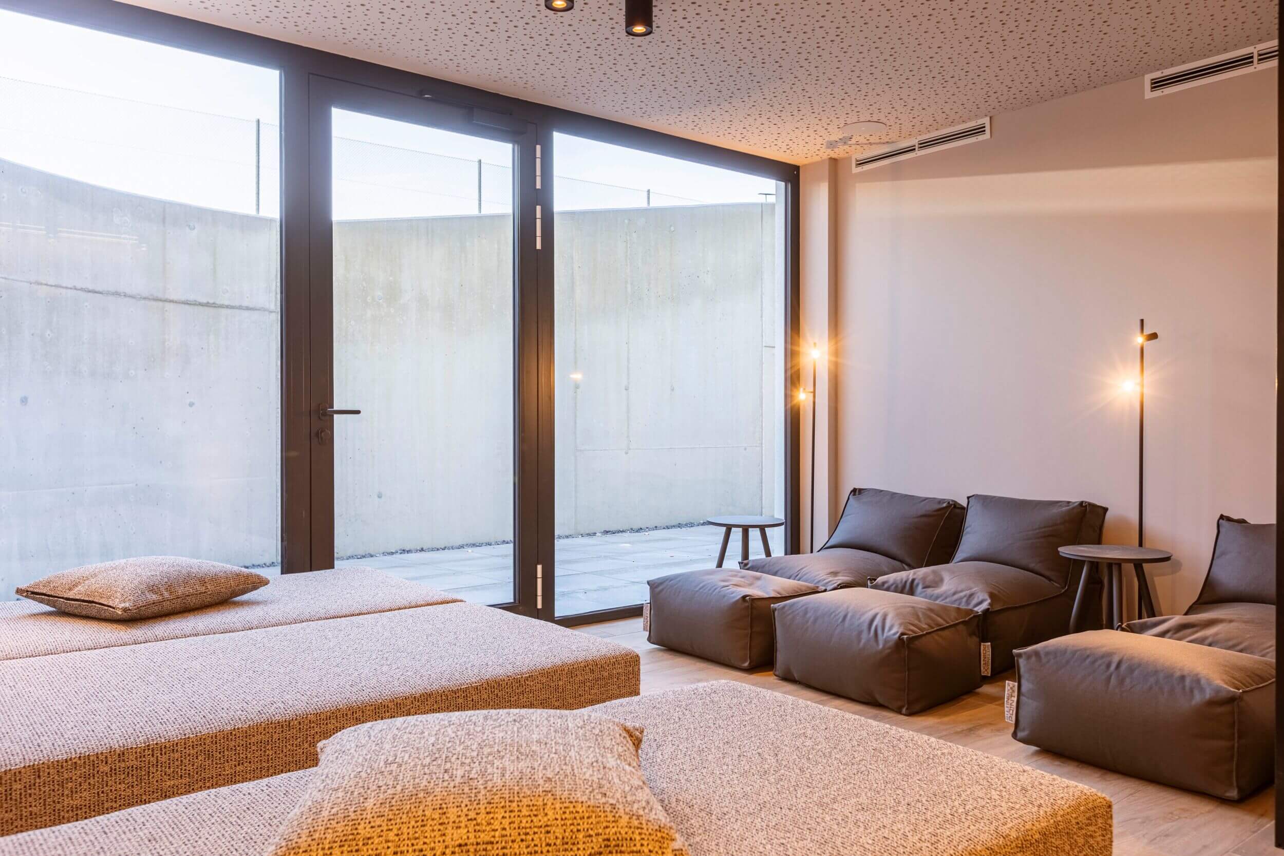 Nach Wanderungen, Skitagen oder Radtouren ist der gemeinschaftliche Wellnessbereich der richtige Ort, um ausgiebig zu entspannen. Hierfür stehen dir eine Finnische Sauna, eine Themensauna, eine Regenerationsdusche und ein Ruheraum mit Blick ins Grüne zur Verfügung.