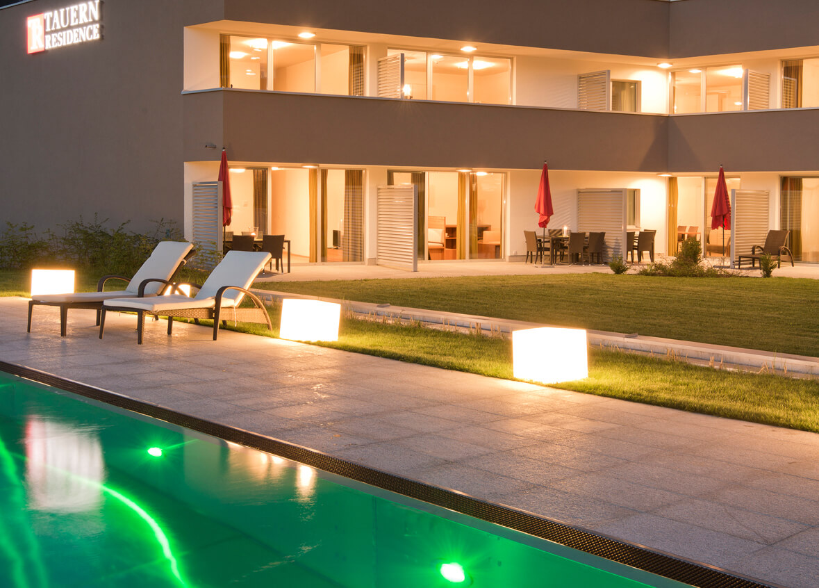 In der Tauernresidence Radstadt erwarten dich zahlreiche Annehmlichkeiten, die deinen Urlaub in der Salzburger Sportwelt besonders angenehm machen: Während Kinder am Spielplatz toben, kannst du Skipässe oder Eintritte für die nahegelegene Therme Amadé direkt an der Rezeption kaufen. Deine Sportausrüstung (Skier, Schuhe oder Bikes) bringst du im Skikeller unter, dein Auto parkt sicher in der Tiefgarage.