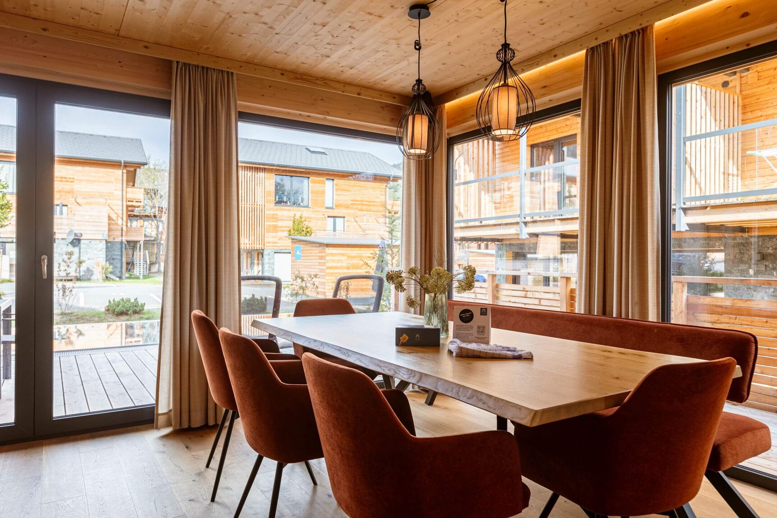 Onze Kreischberg Pool Villas & Penthouses staan voor een hoogwaardige inrichting, strakke lijnen en een moderne, Alpine feel-good sfeer. Alle accommodaties beschikken over lichte, ruime woongedeeltes, keukens van hoge kwaliteit, privé spa's en terrassen of balkons.