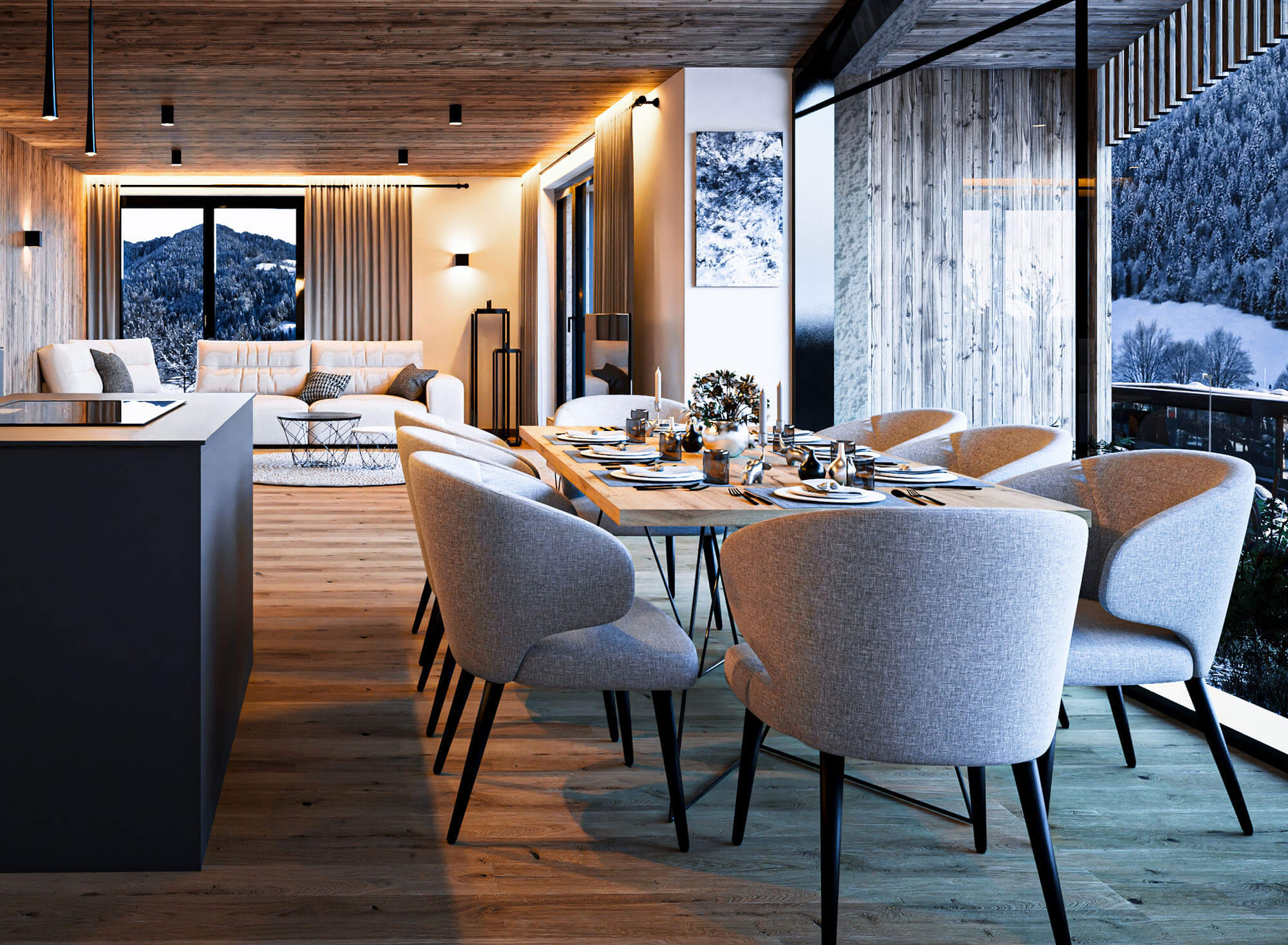 Afhankelijk van de categorie beschikt je vakantieappartement in Söll over 51 – 155 m² woonoppervlak, 1 – 4 slaapkamers, een balkon, terras of tuin en een eigen Finse sauna. In de ruime woonruimtes vind je veel plek om tot rust te komen, te ontspannen en samen te zijn. Volledig uitgeruste keukens, moderne badkamers en doordachte indelingen maken je verblijf bijzonder comfortabel. Tot de verdere infrastructuur van het resort behoren onder andere overdekte buitenparkeerplaatsen en ski- en fietsenstallingen – handig voor iedereen die het Kaisergebergte actief wil ontdekken.