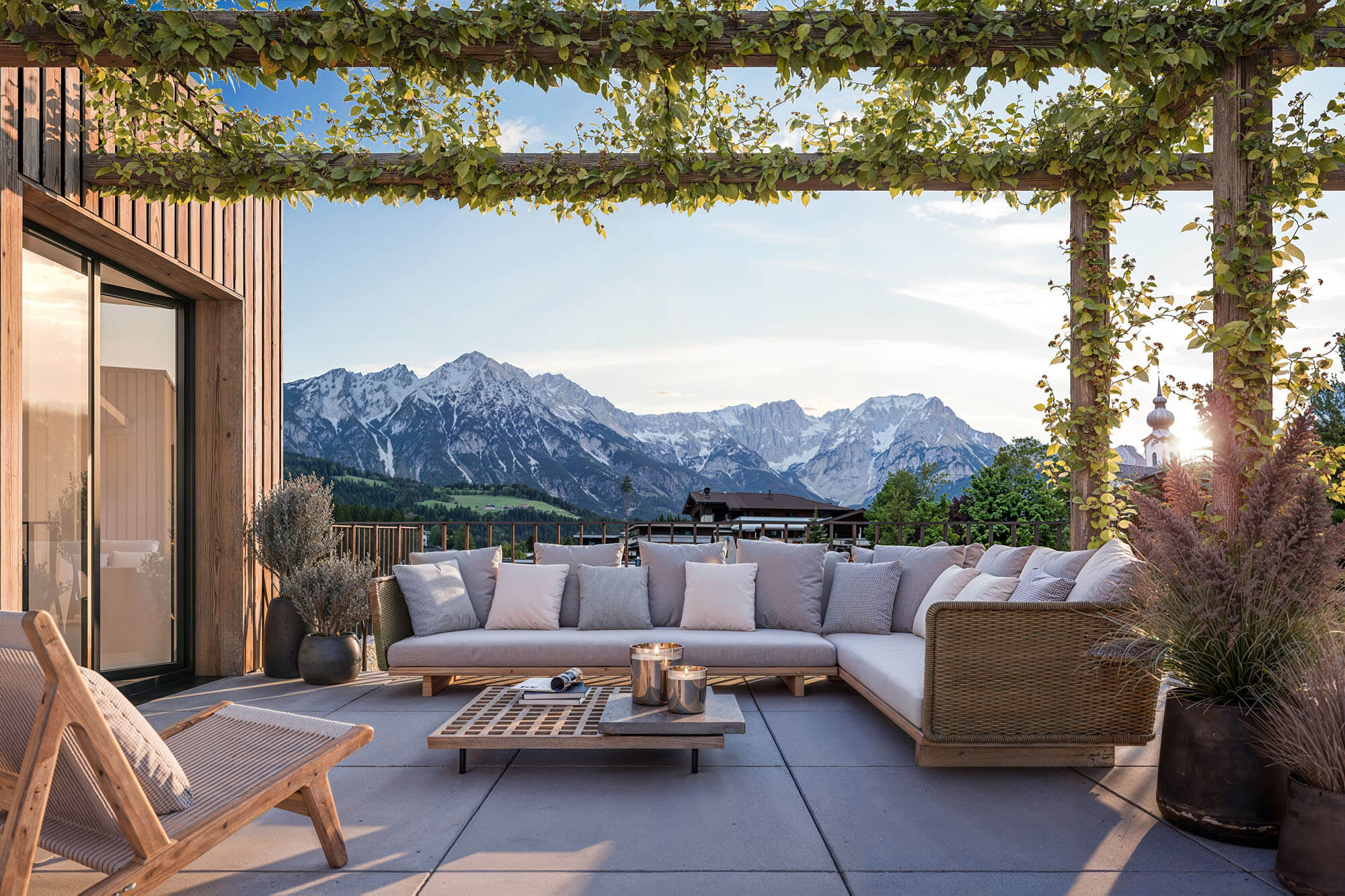 Het Wieshof Wilder Kaiser bestaat uit 3 appartementencomplexen met in totaal 30 vakantieappartementen. Warme houten oppervlakken, rustige kleuren en hoogwaardig meubilair zorgen voor een aangename, tijdloze sfeer, terwijl grote ramen het uitzicht op de Wilder Kaiser en de Hohe Salve vrijgeven.