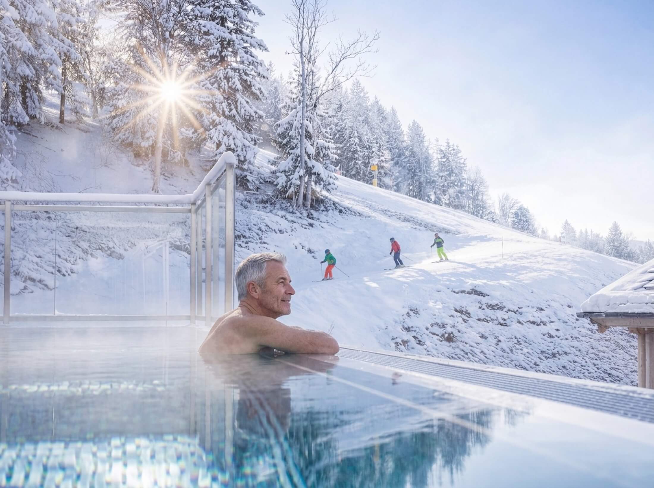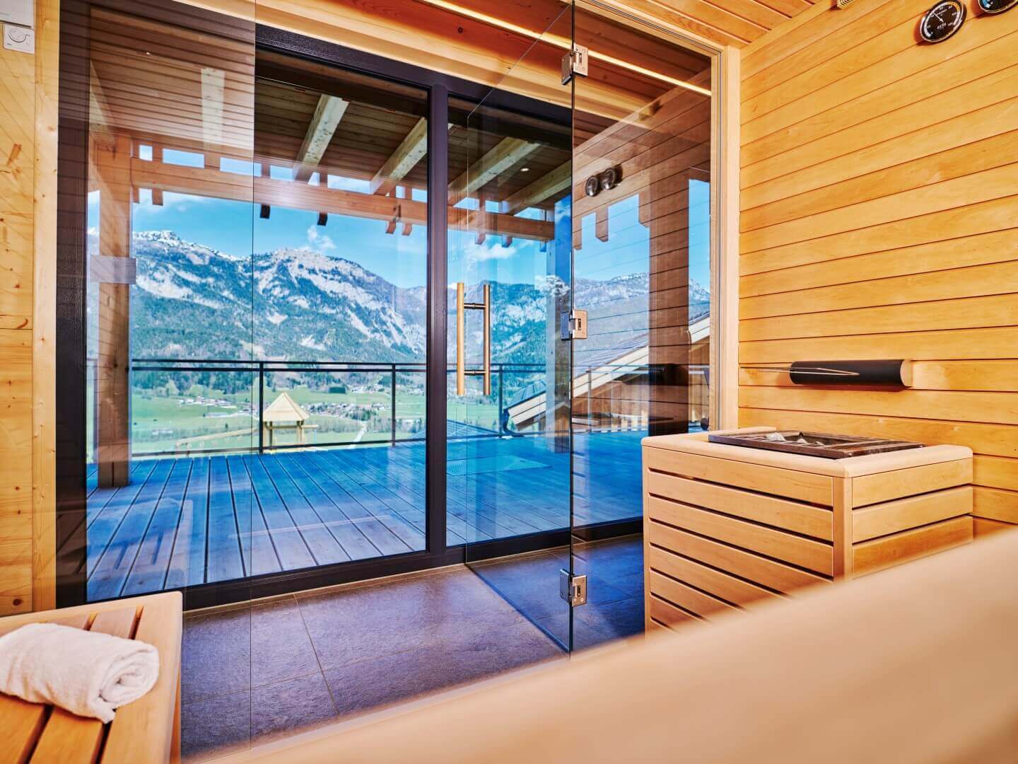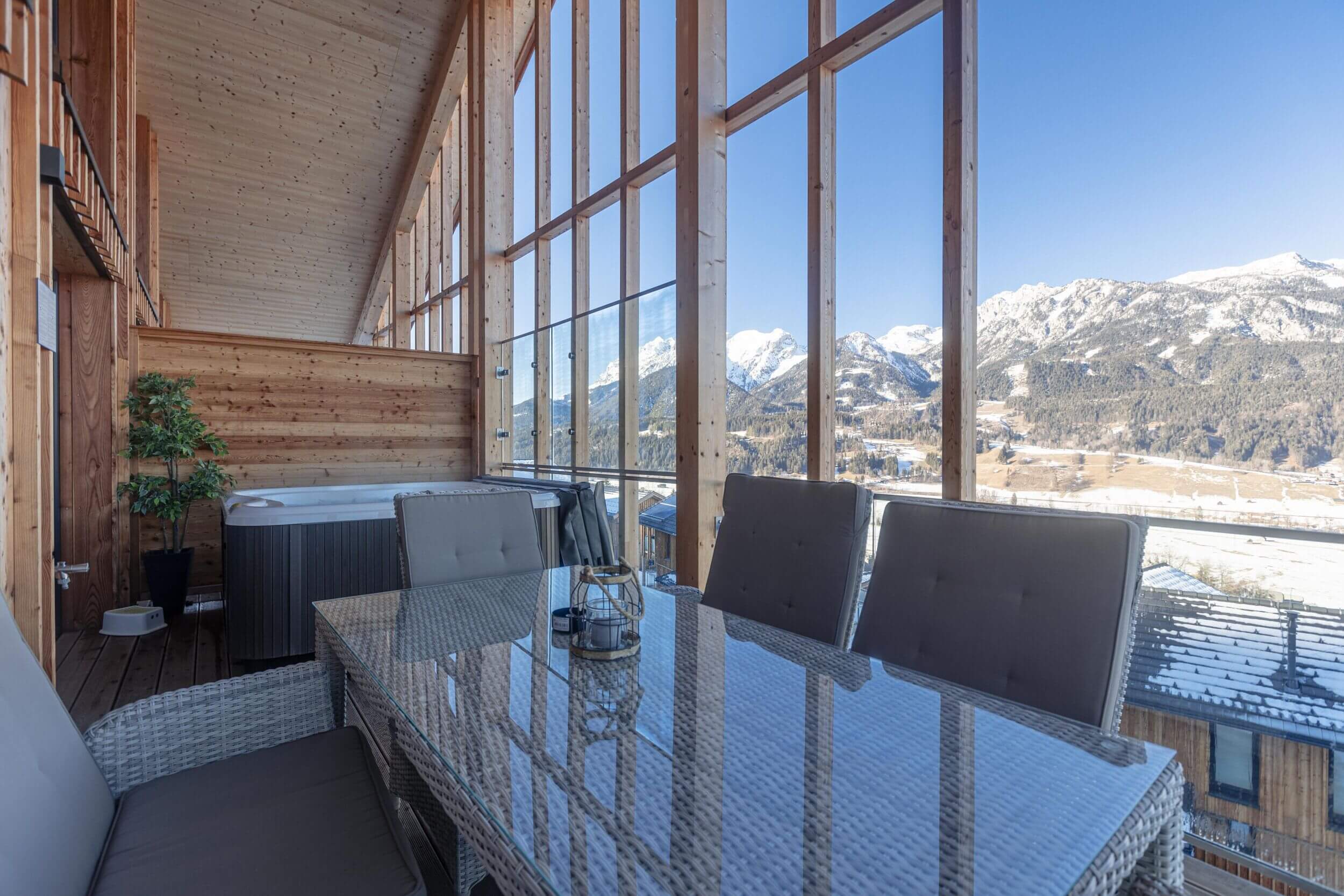 Ein besonderes Highlight ist der private Wellnessbereich in vielen Ferienhäusern. Hier sorgen Finnische Sauna, Whirlpool oder ein beheizter Outdoor-Pool (bis 28 °C) für Entspannung nach aktiven Tagen in den Bergen. Ob nach einer Wanderung im Sommer oder einem Skitag im Winter – hier lässt du den Tag ruhig ausklingen und genießt den Blick ins Ennstal und auf das Dachsteinmassiv.
